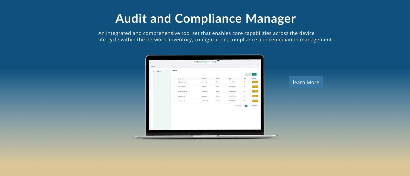 An integrated and comprehensive tool set that enables core capabilities across the device life-cycle within the network: inventory, configuration, compliance and remediation management